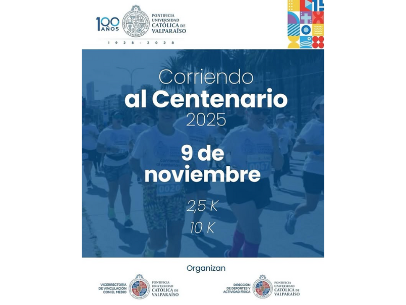 La Pontificia Universidad Católica de Valparaíso ya abrió las inscripciones para la esperada corrida “Corriendo al Centenario 2025”, una actividad familiar y abierta a toda la comunidad, organizada por la Vicerrectoría de Vinculación con el Medio, a través de la Dirección de Deportes y Actividad Física PUCV.