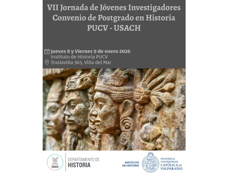 El Instituto de Historia de la Pontificia Universidad Católica de Valparaíso invita a la comunidad universitaria a participar en la VII Jornada de Jóvenes Investigadores, un espacio de encuentro académico que reúne a estudiantes e investigadores/as en formación del convenio de postgrado en Historia PUCV–USACH.