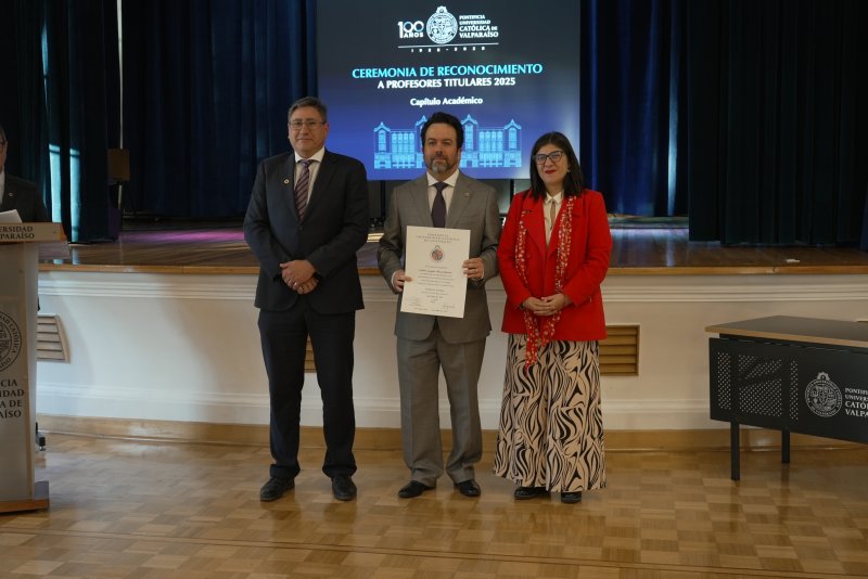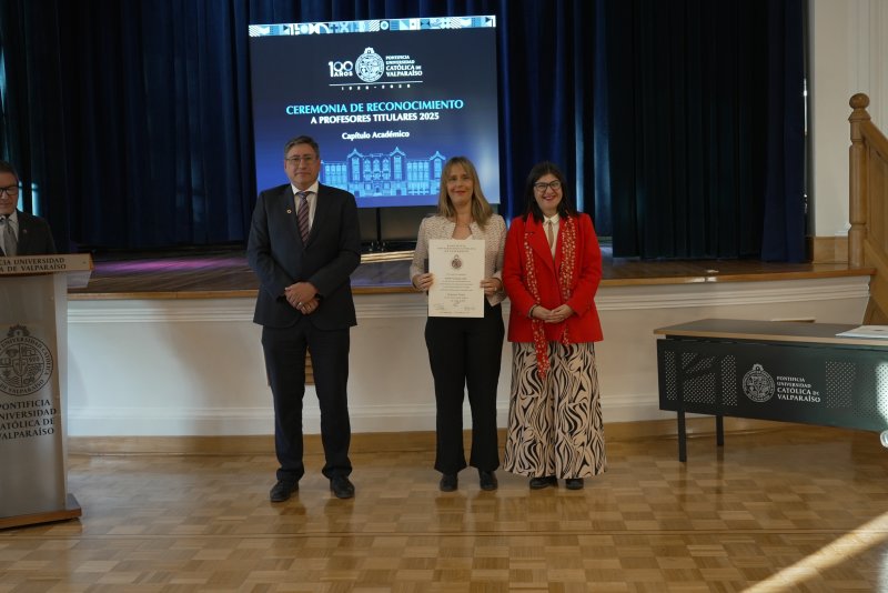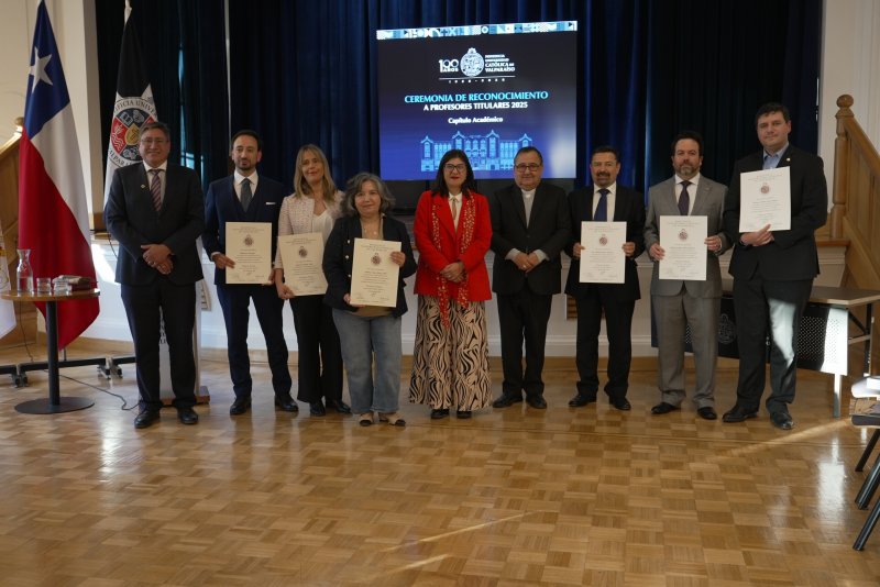 En el Salón de Honor de Casa Central, ante altas autoridades institucionales y familias, se llevó a cabo la ceremonia en que académicas y académicos recibieron los diplomas que las y los acredita como Profesores Titulares.