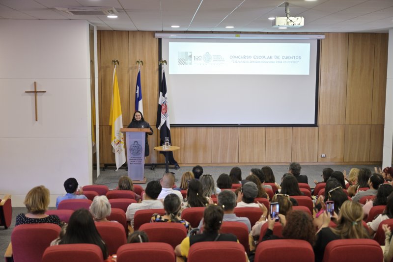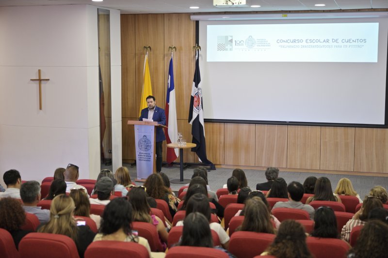 La Pontificia Universidad Católica de Valparaíso reconoció a cerca de 30 estudiantes de distintos establecimientos de la región durante la premiación del Concurso Literario “Valparaíso imaginado: Voces para un futuro”, en una ceremonia realizada en la Casa Central que contó con la presencia de autoridades universitarias y representantes del Sistema de Bibliotecas de la PUCV.