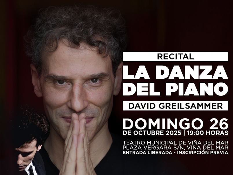 El concierto “La Danza del Piano”, protagonizado por el pianista y director de orquesta David Greilsammer, se presentará en el Teatro Municipal de Viña del Mar (Plaza Vergara s/n, Viña del Mar) el domingo 26 de octubre, a las 19 horas, con entrada liberada previa inscripción ACÁ.