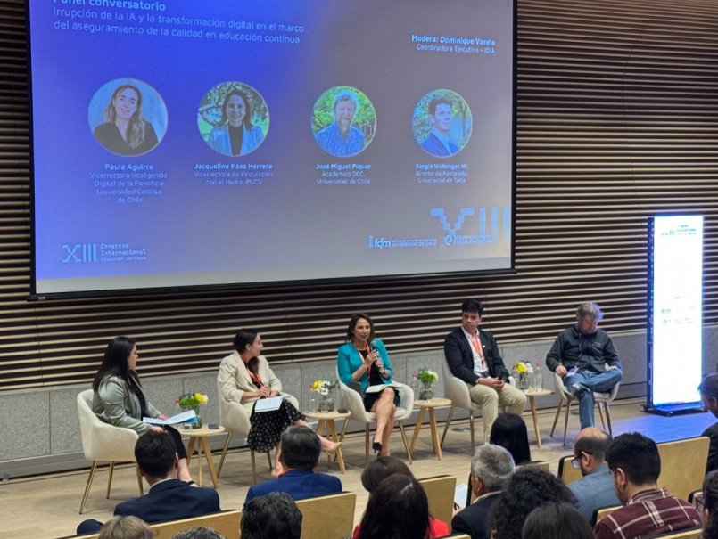 En la oportunidad, la vicerrectora de Vinculación con el Medio de la PUCV, Jacqueline Páez, participó en un conversatorio en torno a la inteligencia artificial y la innovación aplicada a la formación continua. Asimismo, fue la encargada de oficializar que en 2026 la sede del encuentro será la Pontificia Universidad Católica de Valparaíso.