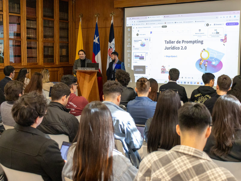 El pasado 24 de septiembre, en la Sala Alberto Cruz de Casa Central, se llevó a cabo la sesión final del “Taller de Prompting en Inteligencia Artificial Generativa para estudiantes de Derecho”, actividad de extensión académica organizada por el Programa Derecho, Inteligencia Artificial y Tecnología DIAT PUCV, en colaboración con el Legal Management Innovation Lab LMIL-PUCV, en el marco de los Fondos Concursables de Vinculación con el Medio 2025, cuyo principal enfoque fue para alumnos de tercer, cuarto y quinto año con el objetivo de enseñar a las personas cómo comunicarse de manera efectiva con modelos de inteligencia artificial.