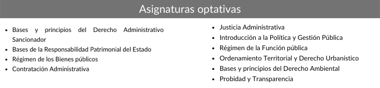 Con ello presente, el graduado del programa cuenta con diversas competencias avanzadas, puesto que conoce, comprende y analiza críticamente contenidos avanzados y actualizados en Derecho Público, con particular atención en el Derecho Administrativo; interpreta, realiza un diagnóstico y analiza críticamente problemas legales complejos vinculados en las relaciones con los órganos y servicios públicos; previene y resuelve problemas legales complejos mediante instrumentos y estrategias que incorporan o aplican los conocimientos especializados; y diseña estrategias, instrumentos de solución y análisis crítico con el objeto de resolver problemas y que se caracterizan por su rigor metodológico y exhaustividad.