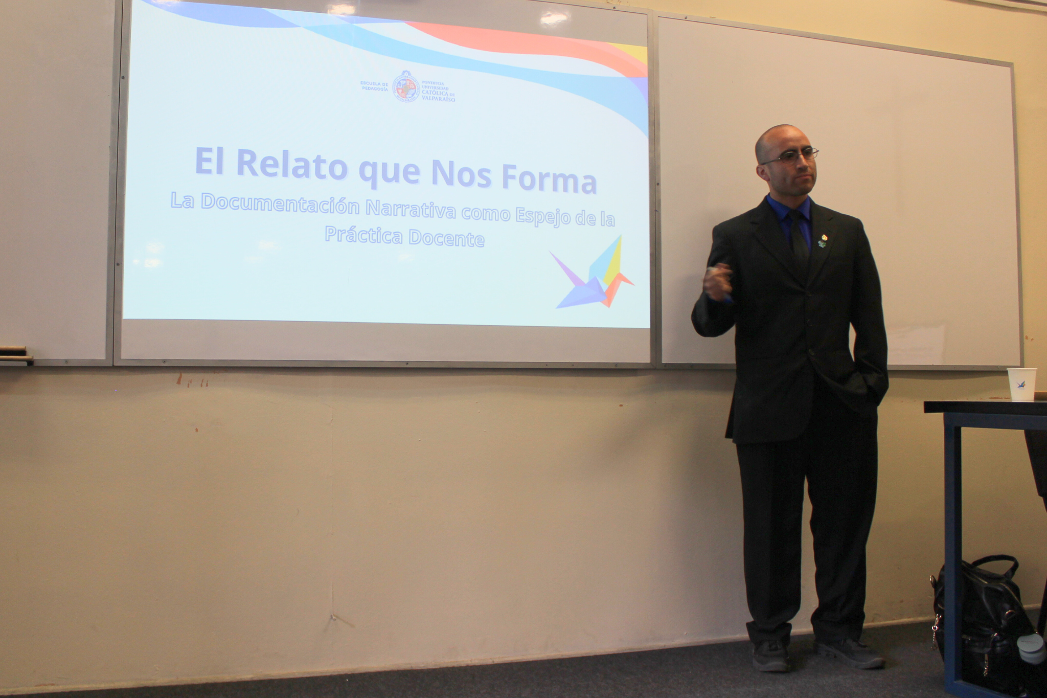 En el marco del Congreso Internacional de Educación para un Mundo Globalizado, el egresado de la carrera de Pedagogía en Filosofía de la PUCV, José Moraga, presentó la ponencia titulada “El relato que nos forma: la documentación narrativa como espejo de la práctica docente”. Una investigación que fue desarrollada en colaboración con David Jeria, también egresado del Instituto de Filosofía.