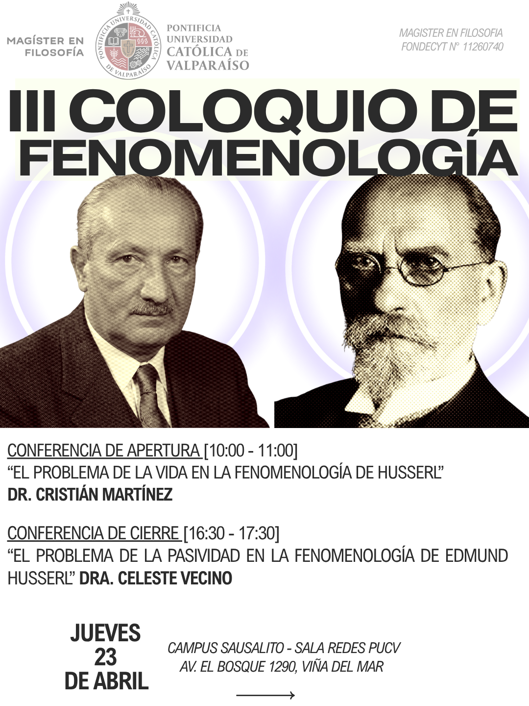 El programa de Magíster en Filosofía invita a toda la comunidad a participar en el III Coloquio de Fenomenología el próximo jueves 23 de abril