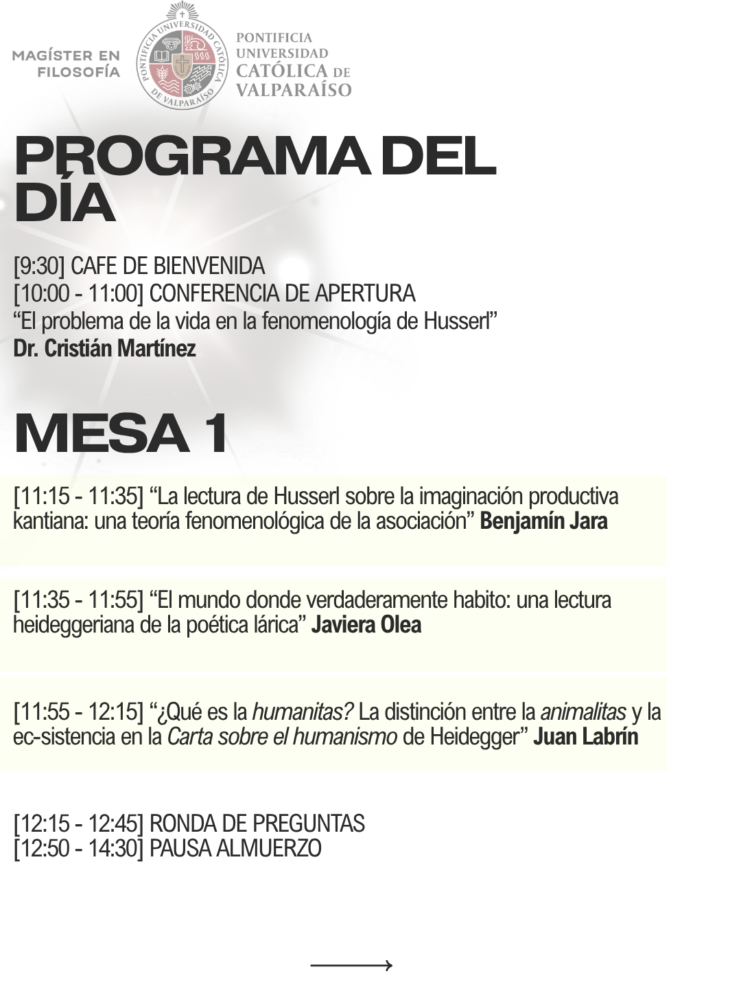 Se invita cordialmente a toda la comunidad del Instituto de Filosofía a participar en la tercera versión del Coloquio de Fenomenología de Valparaíso. La actividad se desarrollará entre las 9:30 y las 17:30 horas en la Sala Redes de la Facultad de Filosofía y Educación de la PUCV.