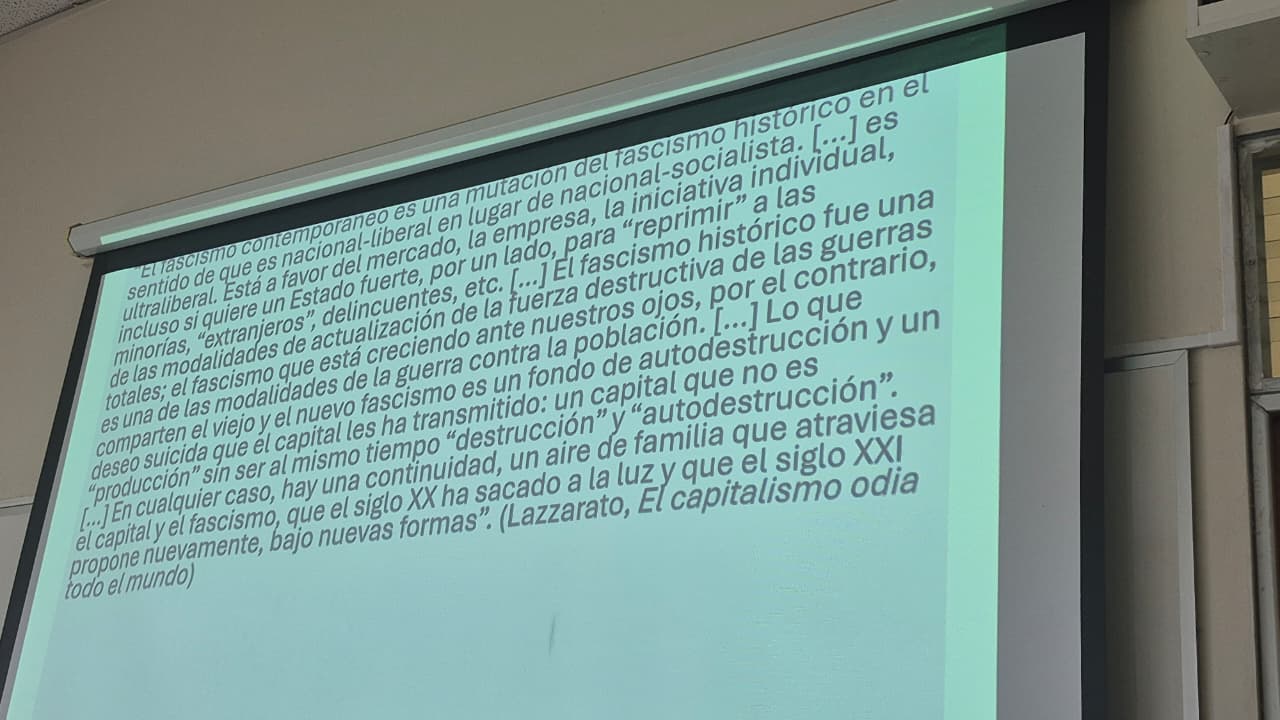La actividad se inició con las ponencias de Matías Cárdenas, sobre los microfascismos, Yerko Mejías, en torno a la filosofía de la técnica y el capitalismo algorítmico, y Joshua Castro sobre el cómo leer y usar la filosofía de Deleuze más allá de la conmemoración.