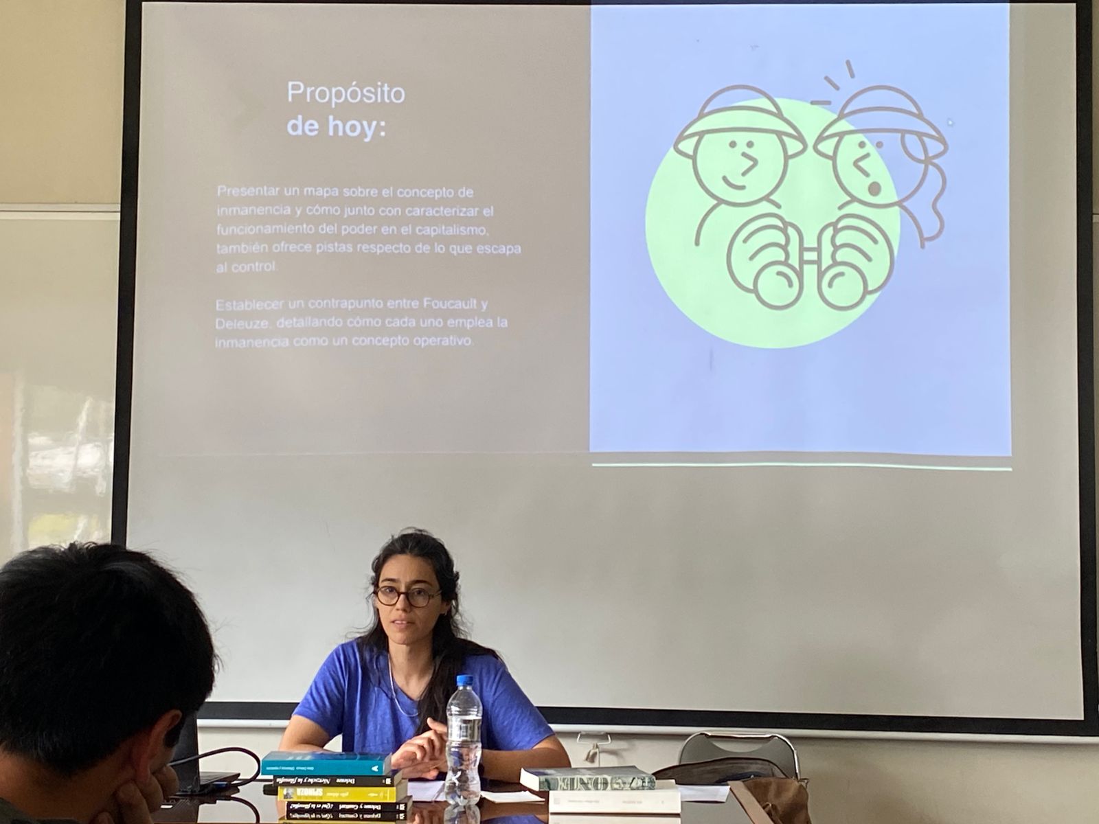 Posteriormente, Nadinne Canto abordó la inmanencia como concepto operativo para analizar el poder y la resistencia en el capitalismo neoliberal, y Patricio Landaeta cerró la jornada con una reflexión sobre la función del concepto de diagrama en la configuración de los regímenes de deseo, obediencia y subjetivación.