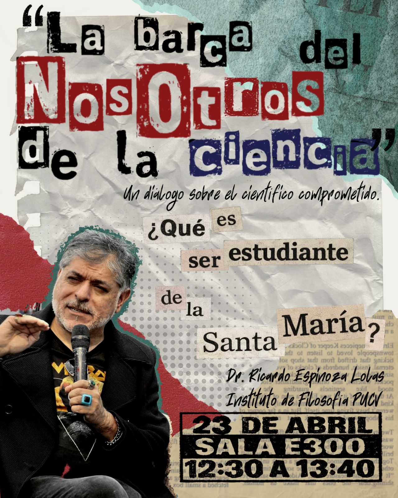 El académico del Instituto de Filosofía PUCV, prof. Dr. Ricardo Espinoza Lolas, expondrá en la Universidad Técnica Federico Santa María su charla titulada: "La barca del NosOtros de la ciencia. Un diálogo sobre el científico comprometido".